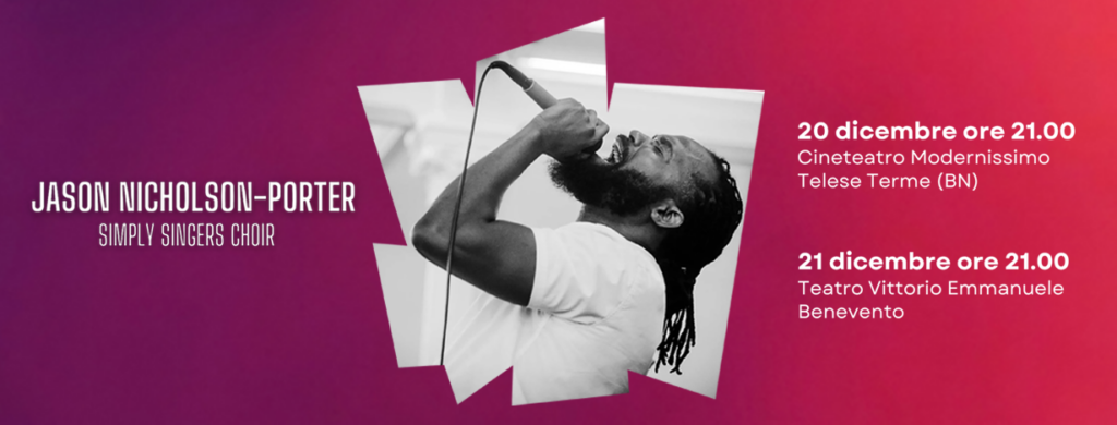 Le serate vedranno come ospite speciale Jason Nicholson-Porter, una delle voci più potenti e ispirate della scena gospel britannica, vincitore di numerosi premi internazionali e protagonista dei principali festival europei del genere. Insieme a lui, il Simply Singers Choir di Telese Terme regalerà un viaggio musicale tra gospel tradizionale e sonorità contemporanee, per celebrare la gioia e l’energia del Natale. Il coro sarà accompagnato da Antonello Rapuano al pianoforte, Alfonso Camarota al basso e Domenico De Marco alla batteria.